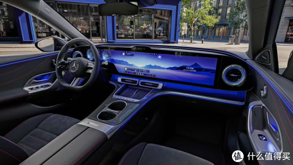 座舱最核心的亮点是一块横贯中控台的MBUX Hyperscreen超联屏,被官方称为“以驾驶者为中心的私密空间”,整体布局与GLC纯电版保持一致